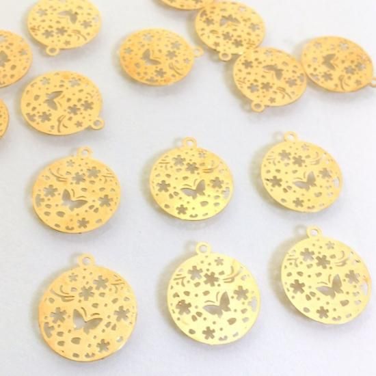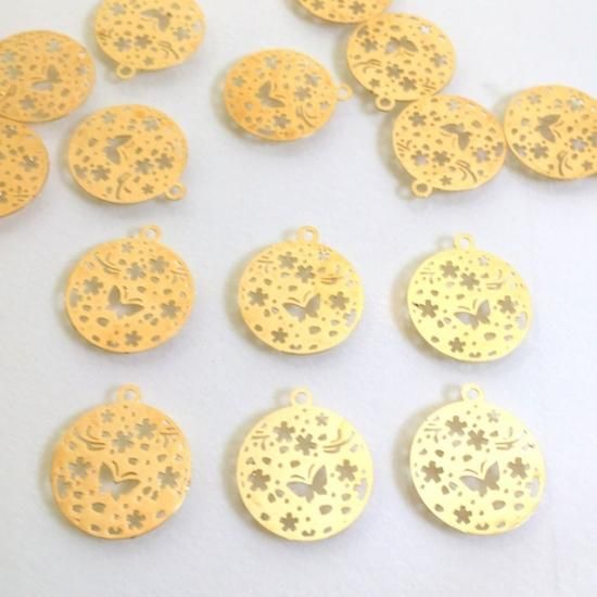 ゴールドのプレートに、繊細な模様がデザインされた透かしパーツです。