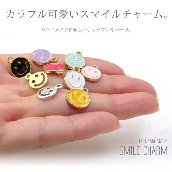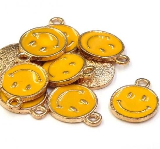スマイルチャーム(6個)イエロー 16×18mm ゴールドベース