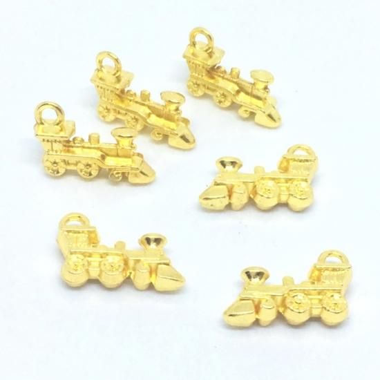 蒸気機関車の立体チャーム(6個)ゴールド汽車チャーム 電車