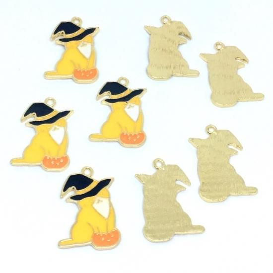 ハロウィンキャット【魔女とかぼちゃ】ゴールドチャーム ネコ