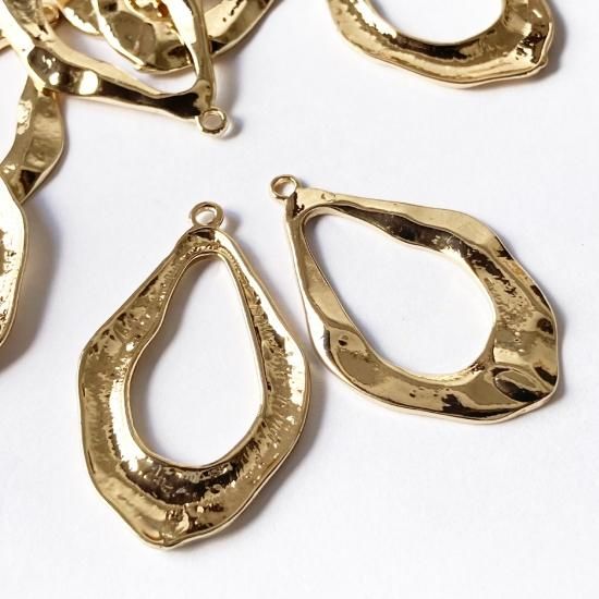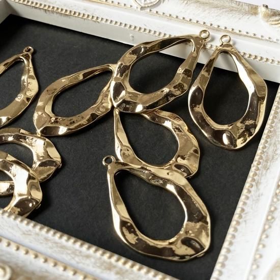 10個 ドロップリングチャーム 雫フレーム 薄い レジン枠 ゴールド レース