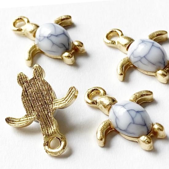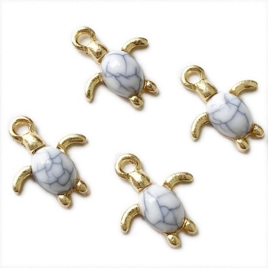 4個 海を泳ぐウミガメのチャーム ホヌ 天然石 ハウライト風